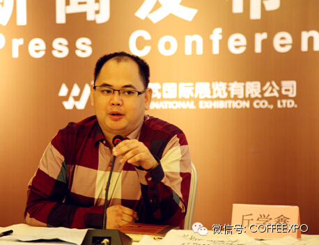 12月4日上午,2014广州咖啡博览会新闻发布会在广州中洲中心益武展馆三楼会议室举行,香港福标国际精品咖啡学院院长丘学鑫先生介绍了2014百城千馆万人共品普洱咖啡暨第三届“中国普洱咖啡杯”世界虹吸壶大赛中国区的情况。